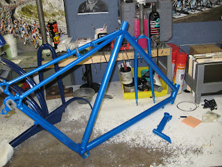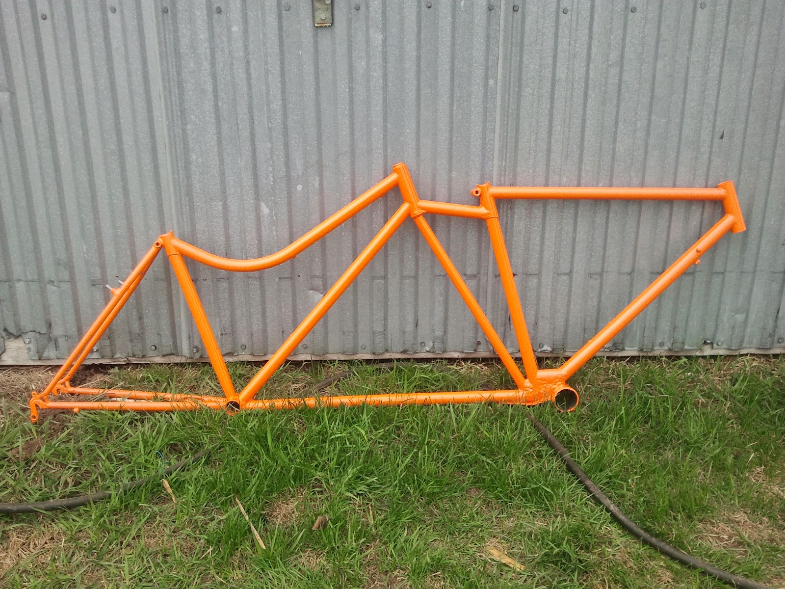 I originally stripped and clearcoated this Big Dummy for my friend Joel, but he decided he wanted something new. Here it is in Fluorescent Orange!